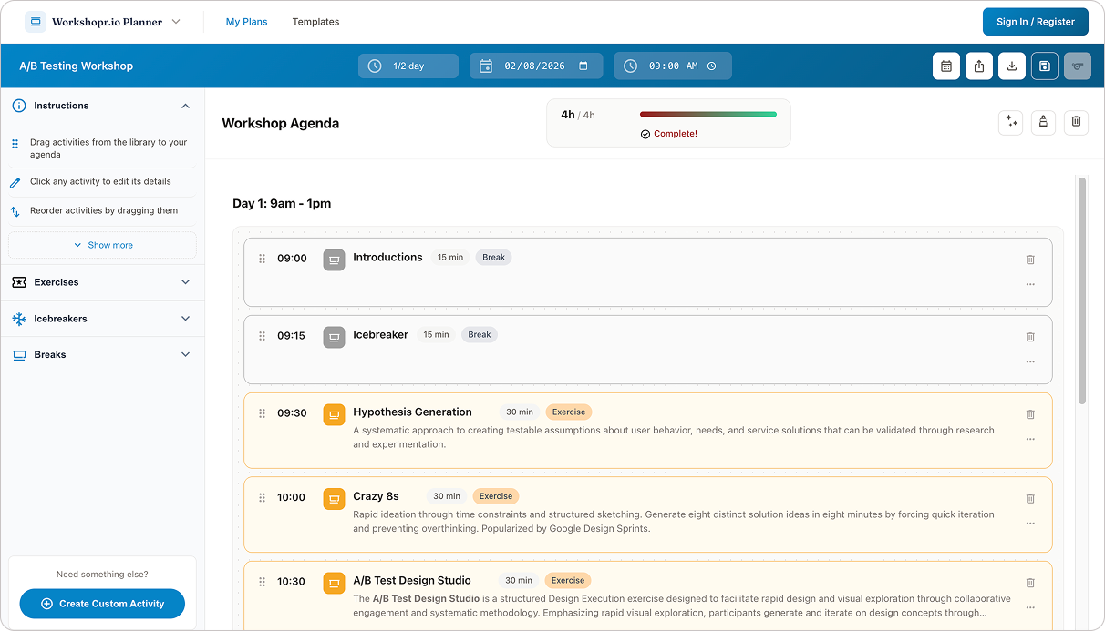 Build workshop agendas