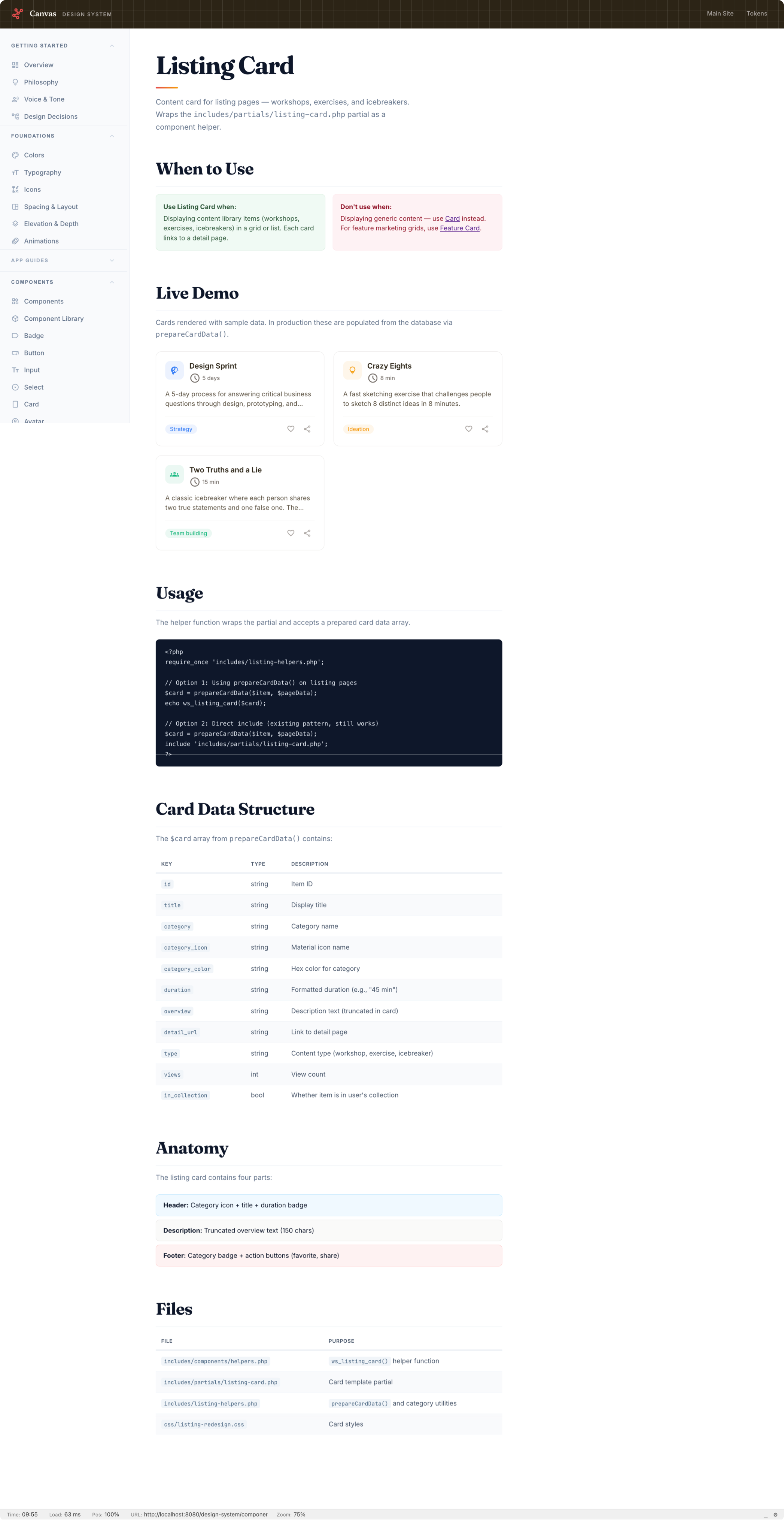 I named the design system Canvas because facilitators work with canvases constantly (Business Model Canvas, Lean Canvas, Empathy Map Canvas, etc.), and a canvas is the blank surface you build on, which maps well to what a design system provides: the foundation for creating interfaces.